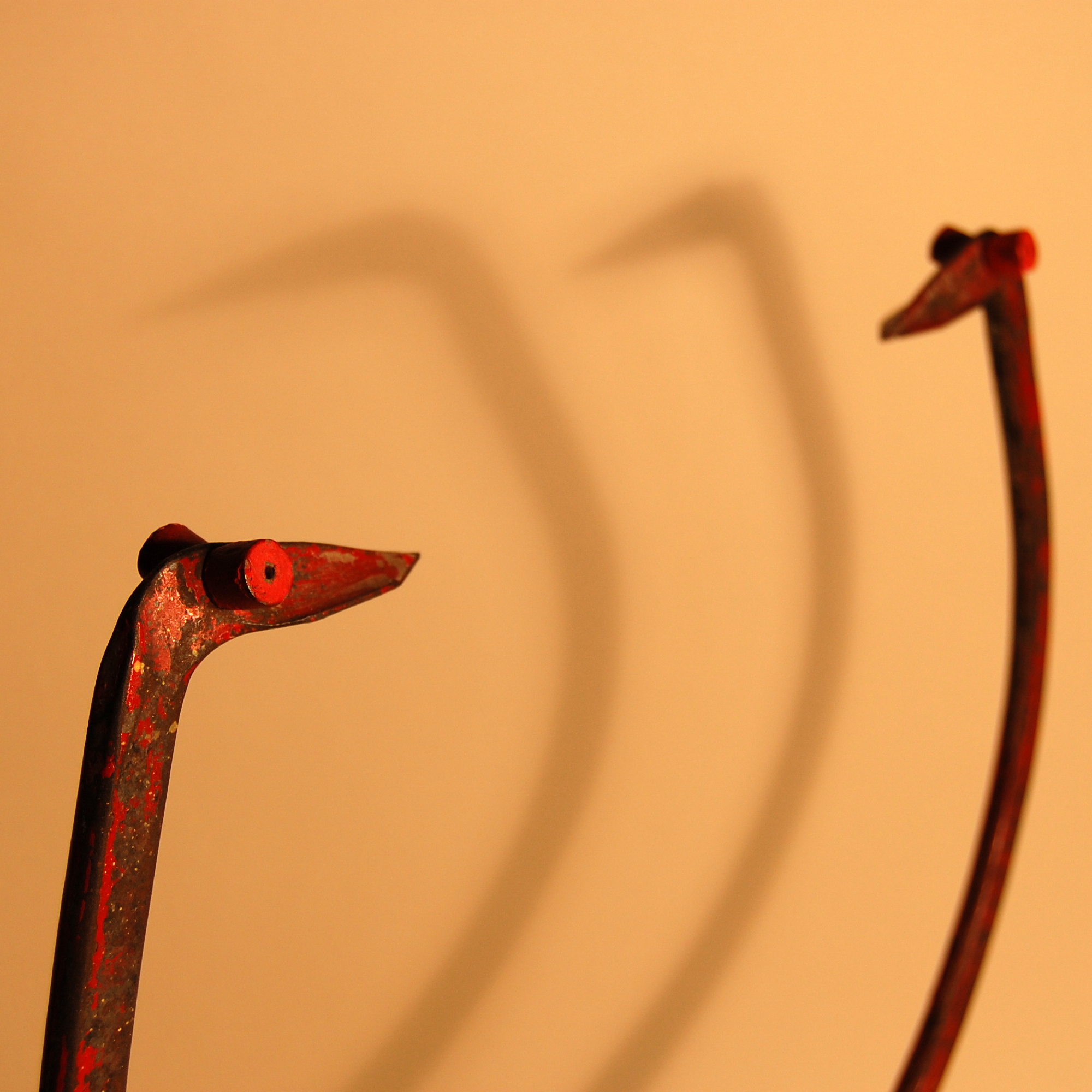 Materials and Techniques: Metal plate, antique ice tongs, red-painted magnets