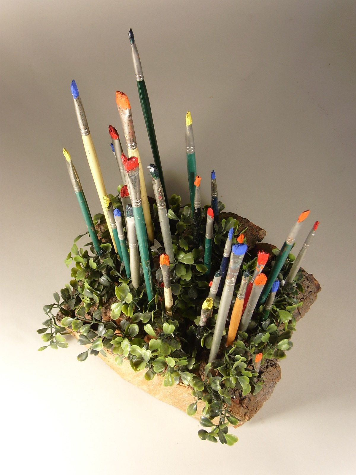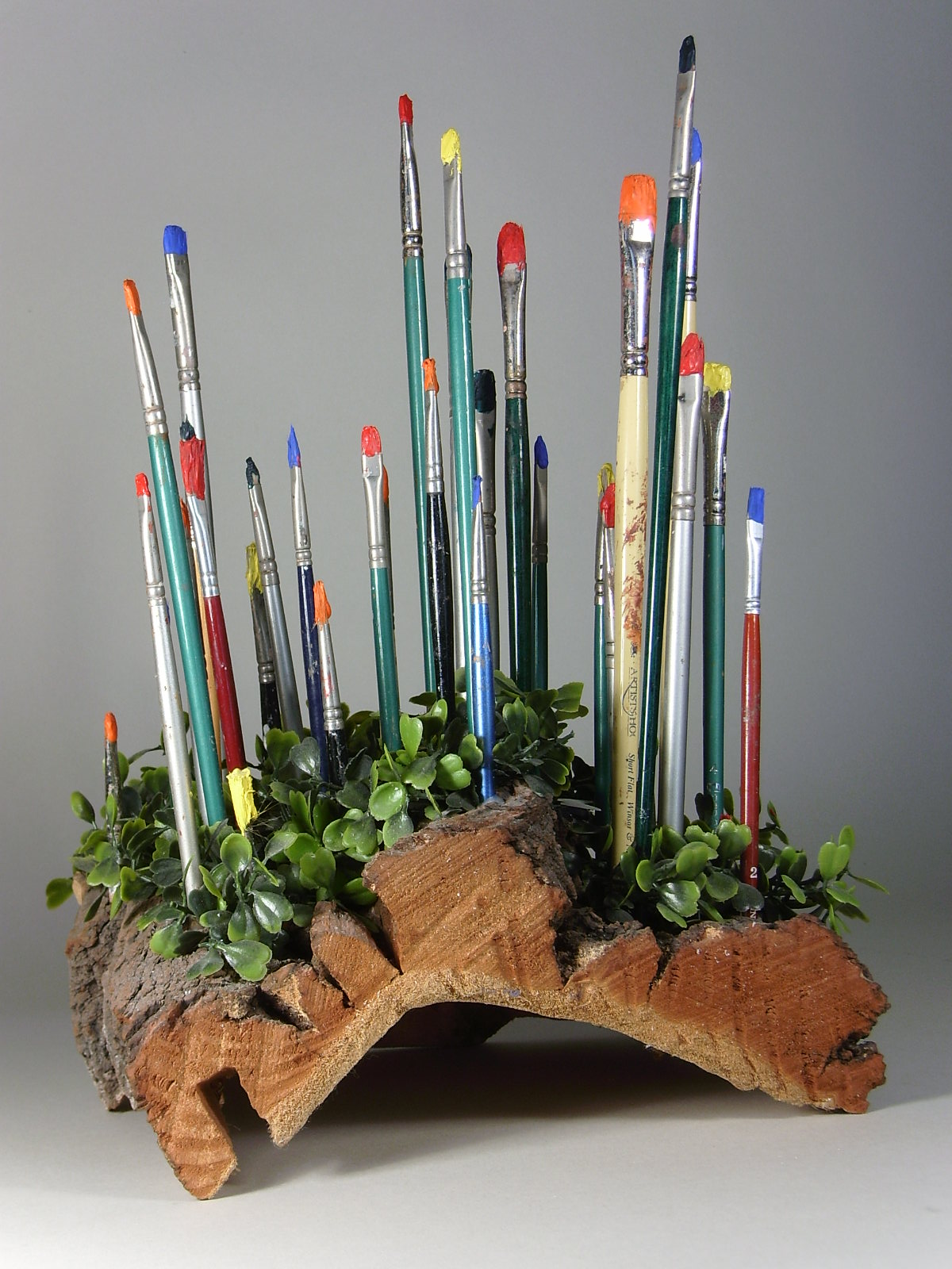 Description:  A stand of humanity expressed on a mound of fauna. The brushes are representative of people of various sizes, shapes, and colors, yet common in their paint brush notoriety.