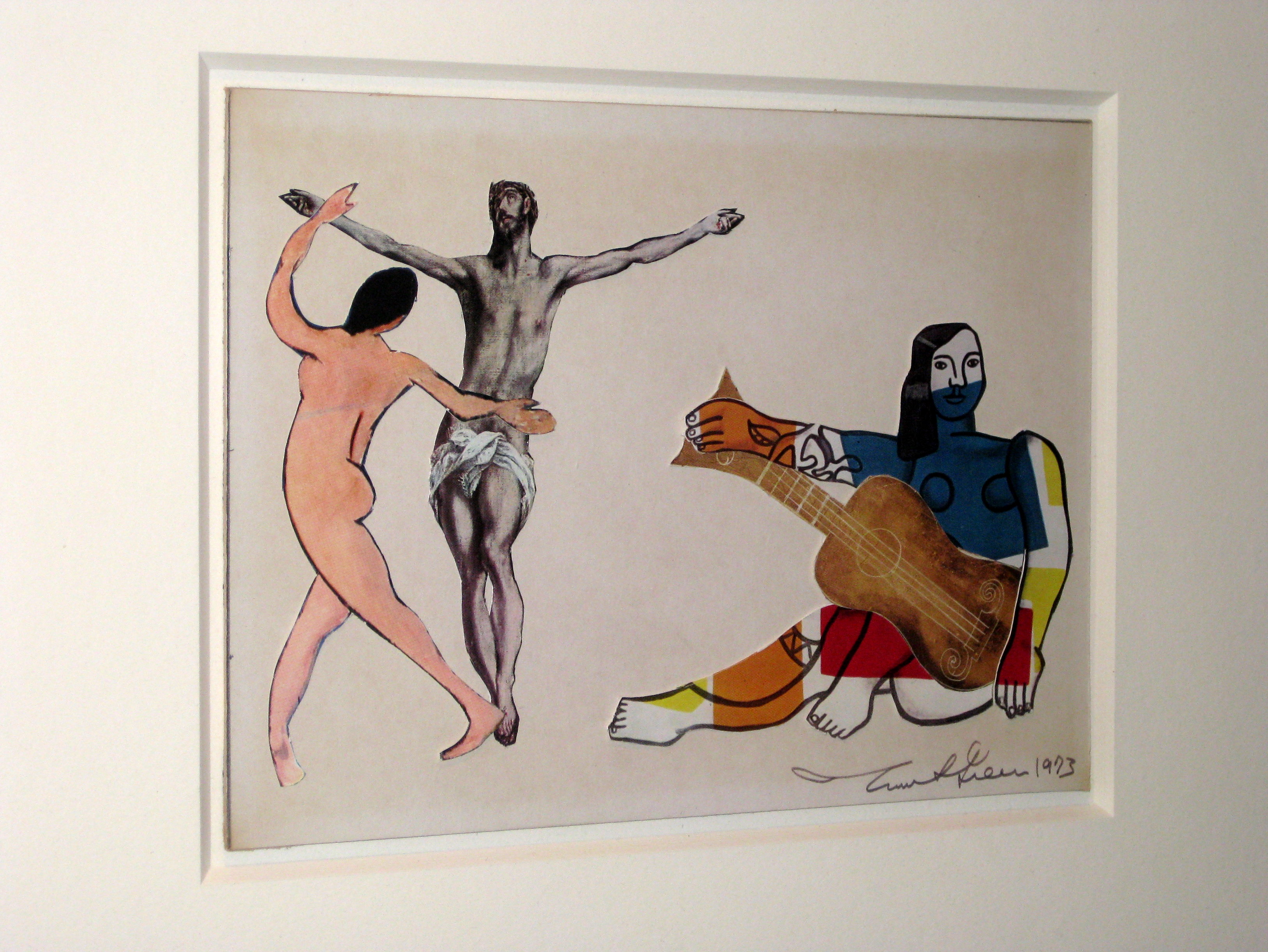 Materials and Techniques: White paperboard, cutouts from reproduction postcards and/or art books, mounted and placed in a frame.