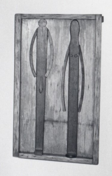 Description: This piece is a 2D wall mount. It is a rectangular wood board with a thin wood frame. Inside, from top to bottom, are two thin, stretched out figures of a male and female. The male has a small head, long arms, and a penis. The female has a long head, longer thin arms, and two breasts.
