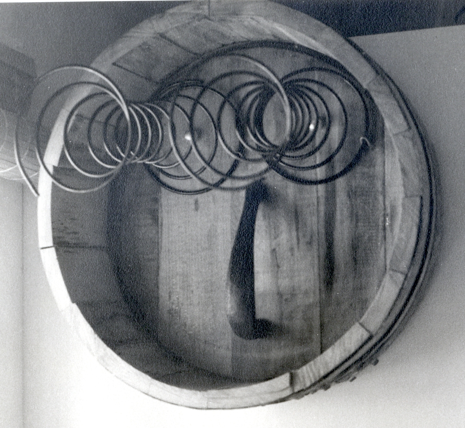 Materials and Techniques: Wooden wash Basin, wire spring, metal cabinet handle