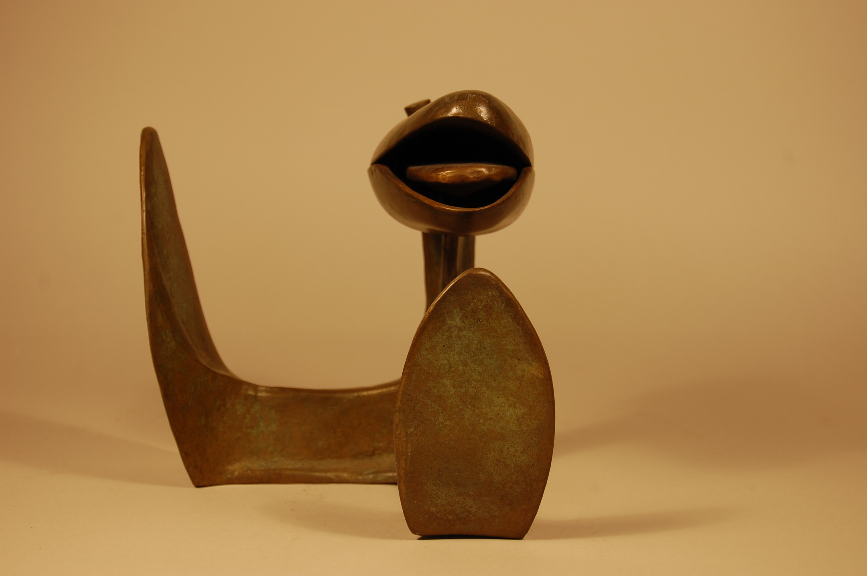 Note: Exhibited at Camden Art Centre in 1980 in a Lucite case. Signature notes that 9 editions of this piece exist. In this particular applied patina, only one piece has been seen. Including this piece with the other chrome-plated editions, five editions of “Wise Guy” have been seen.